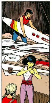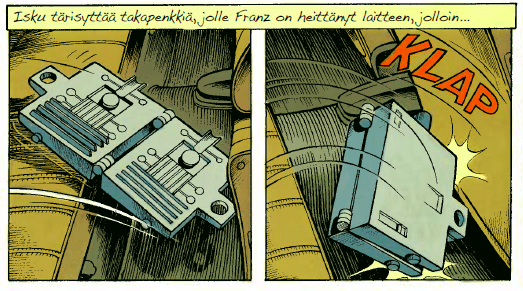 Tekniikan sanasto oli jälleen vahvasti läsnä, mutta tällä kertaa se ei ollut futuristista technobabblea, johon saa keksiä itse vastineet, vaan oman aikansa high-techiä: mikrotietokoneita, kansainväliseen verkkoon liitettyjä lankapuhelimia ja korppuja, joita ajetaan asemiin kaksin käsin! Sen kunniaksi halusin livauttaa käännökseen myös ajan kelkasta mukavasti pudonneen termin ATK. Tsunoa piirtävä ja kirjoittava Roger Leloup on selvästi termihifistelijä, ja mukana on esimerkiksi paljon merenkulkusanastoa. Onneksi minun ei tarvinnut suomentaa albumia tarinan alkuperäiseen ilmestymisaikaan, ilman netin suomia apuja.