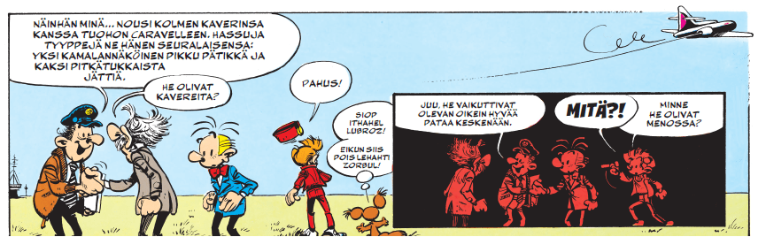 Kolmas ja viimeinen koronakevään ajan kotieristyksissä kääntämistäni alppareista oli Fournierin Tora Torapa, joka ilmestyi ranskaksi alun perin vuonna 1973 ja on suoraa jatkoa vuosi sitten suomentamalleni Kätketylle luostarille. Kätketty luostari puolestaan jatkaa aiempaa Triangeli iskee ‑albumissa (Semic, 1998) aloitettua tarinankaarta. 70-luku näkyy albumissa vahvasti sekä hahmojen olemuksessa että poliittisissa viittauksissa.
