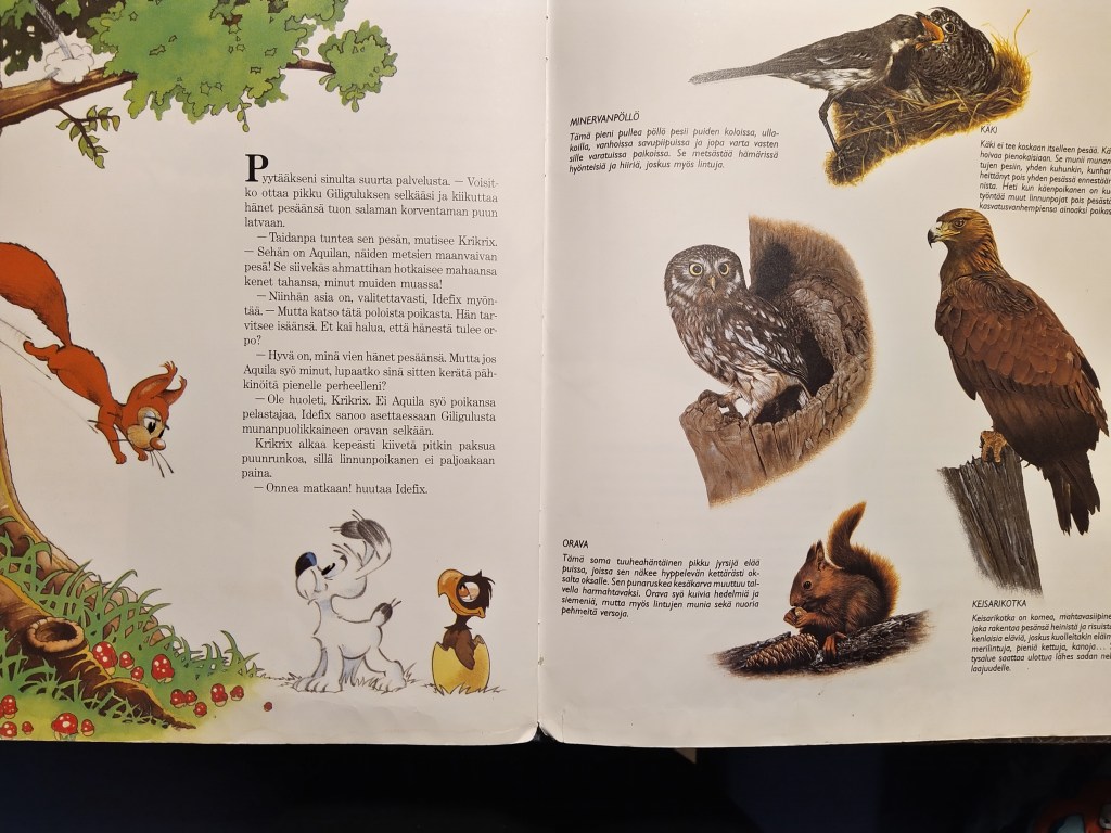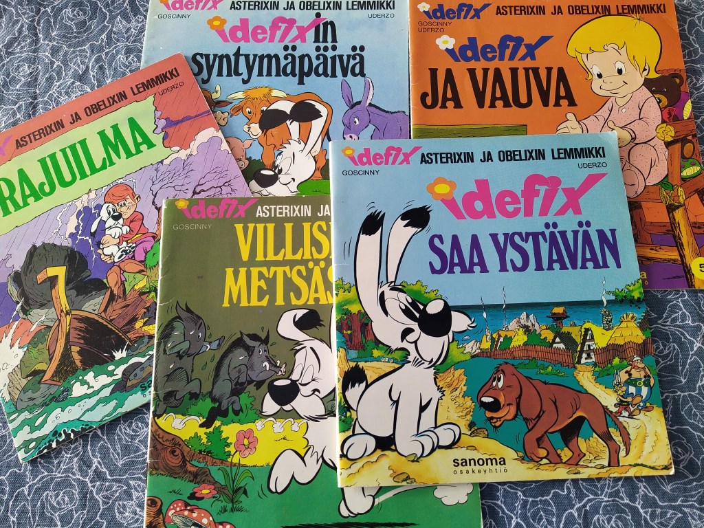 Tarkastelin vanhoja kuvakirjoja sillä silmällä, kävisikö niistä ilmi Idefixin ääni, kun sen ranskalainen ääni olisi suoraan käännettynä ollut kovin… ranskalainen. Kuvakirjat eivät kuitenkaan tähän toimineet, sillä niiden teksti on liian erilaista, paljon simppelimpää. Uusi Idefix ei ole lapsenomainen koiranpentu vaan pätevä kapinallisjoukon johtaja Parisiumissa.